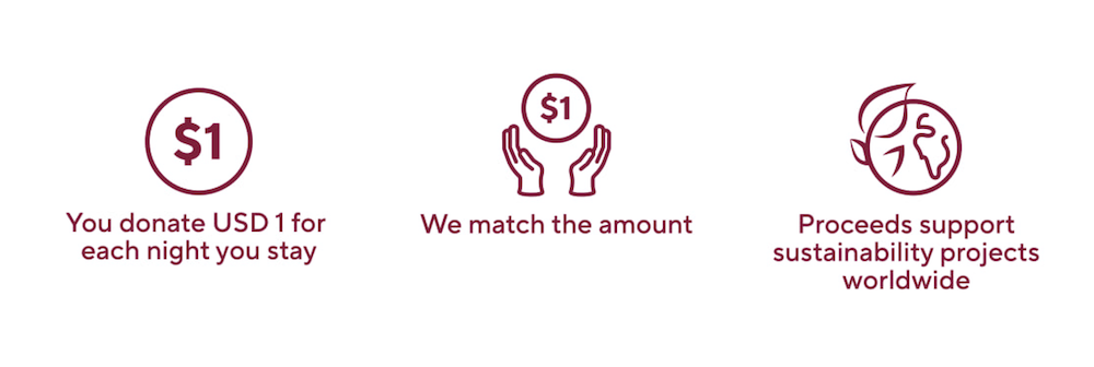 For every night you stay, we invite you to contribute USD 1*. We proudly match your contribution dollar for dollar, doubling the impact of your generosity.